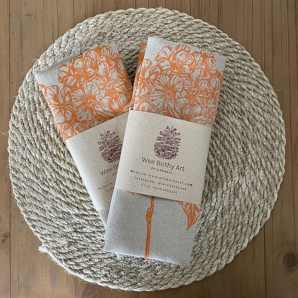 Customer wanted our hydrangea napkins to match the colour of her kitchen, we colour matched and handprinted her napkins.